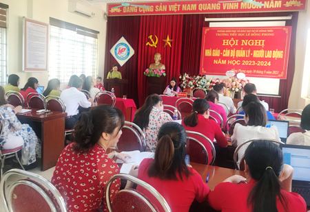 Sáng ngày 30/09/2023, trường TH Lê Hồng Phong tổ chức Hội nghị nhà giáo, cán bộ quản lý, người lao động năm học 2023 – 2024. Về dự Hội nghị có đồng chí Đoàn Văn Chuyền – Phó chủ tịch HĐND phường Hồng phong.