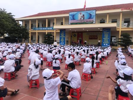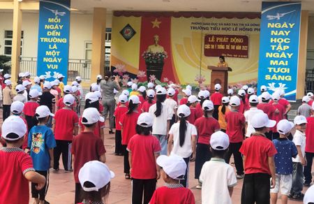 Trường Tiểu học Lê Hồng Phong tổ chức sinh hoạt dưới cờ với chủ điểm “Em biết yêu thương”